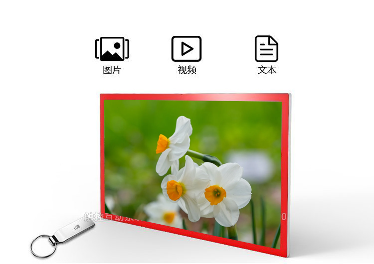自动识别U盘内容,自动循环播放,支持图片、文本、视频等文件。