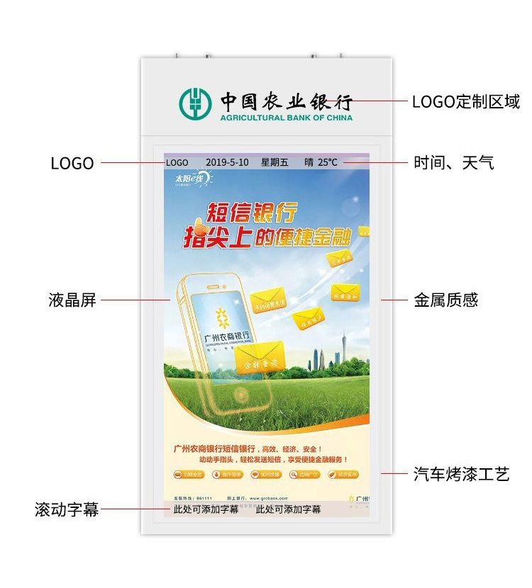 双屏机两面均有屏幕,可同步显示画面两面亮度不同,智能适应橱窗场景